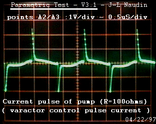Current pulse through the varactors ( R=100 ohms) 10mA/div