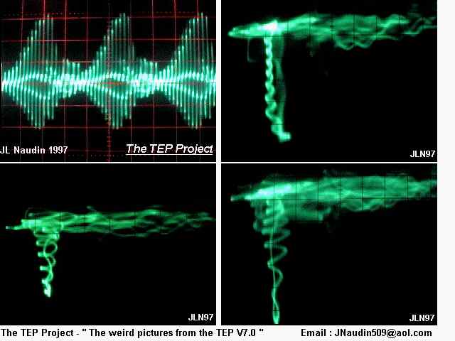 For your Dreams of Overunity, you will find some "weird" pictures generated by the TEP V7.0....Some tuning of the ferrite rods inside the bifilar coils gives this strange pictures.....completly non-linear.....