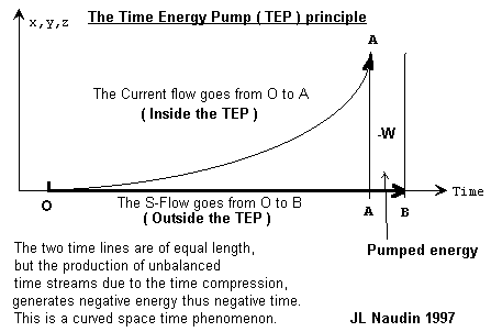 The disruption effect due to the parametric effect in the bifilar modifies the time constant of the circuit (L/R), thus the energy flows. The disymetry between the S-Flow (Poynting flow) running outside and the Time Flow compression inside the circuit (time constant compression) is the main cause of the Pumping effect in the ZPE. Today, I think that the TEP is "a way" to achieve a good Overunity device.
